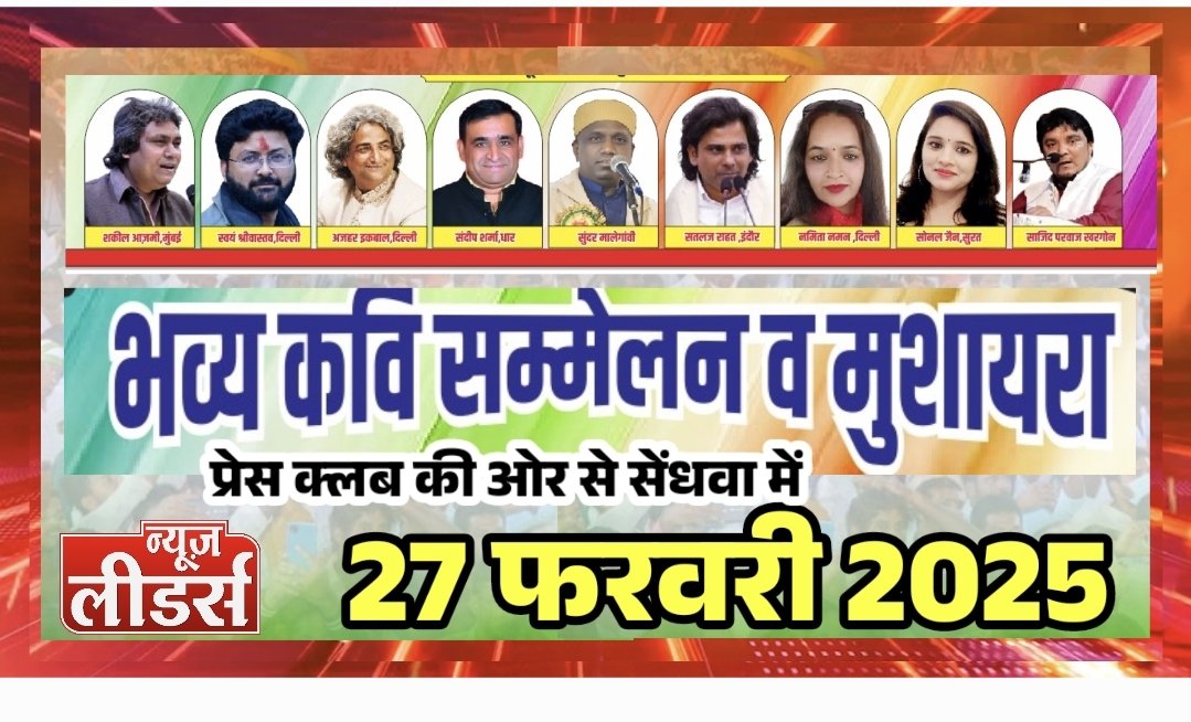 NEWS Leaders : प्रेस क्लब की ओर से सेंधवा में 27 फरवरी को राष्ट्रीय स्तर के कवि सम्मेलन में बरसेगा काव्य रंग
