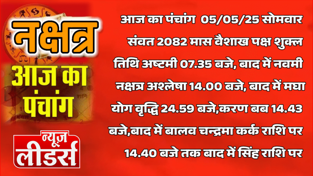 नमस्कार आप देख रहे है न्यूज लीडर्स, कैसा रहेगा 05 मई 2025, सोमवार को आपका दैनिक राशिफल, क्या कह रहे है आपके सितारे, देखिए न्यूज लीडर्स