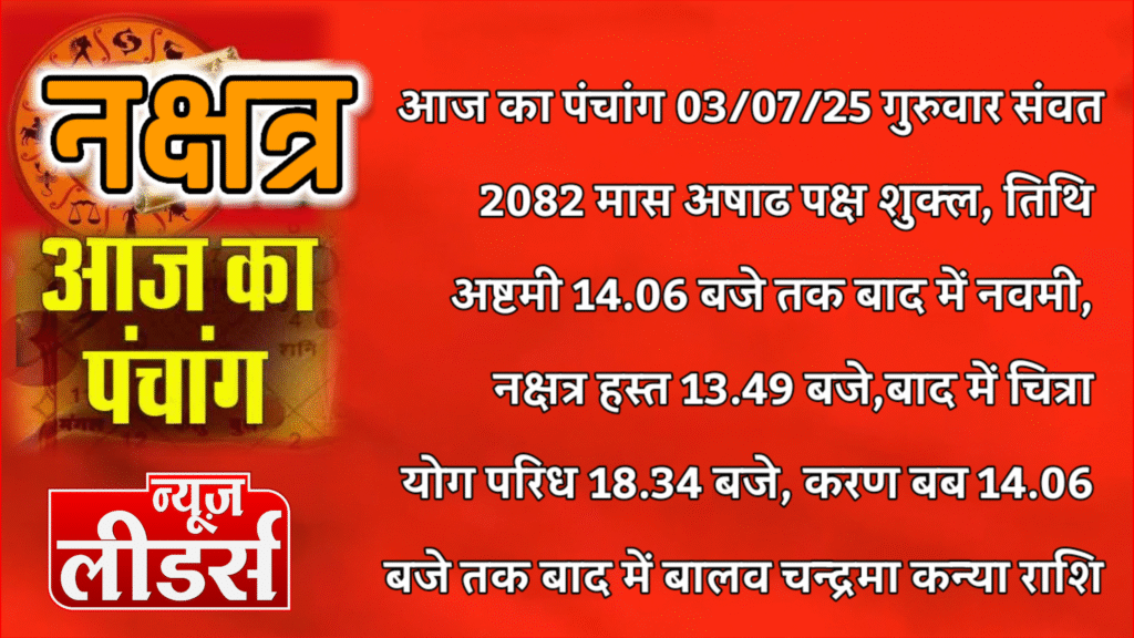 आज का पंचांग 03/07/25 गुरुवार संवत2082