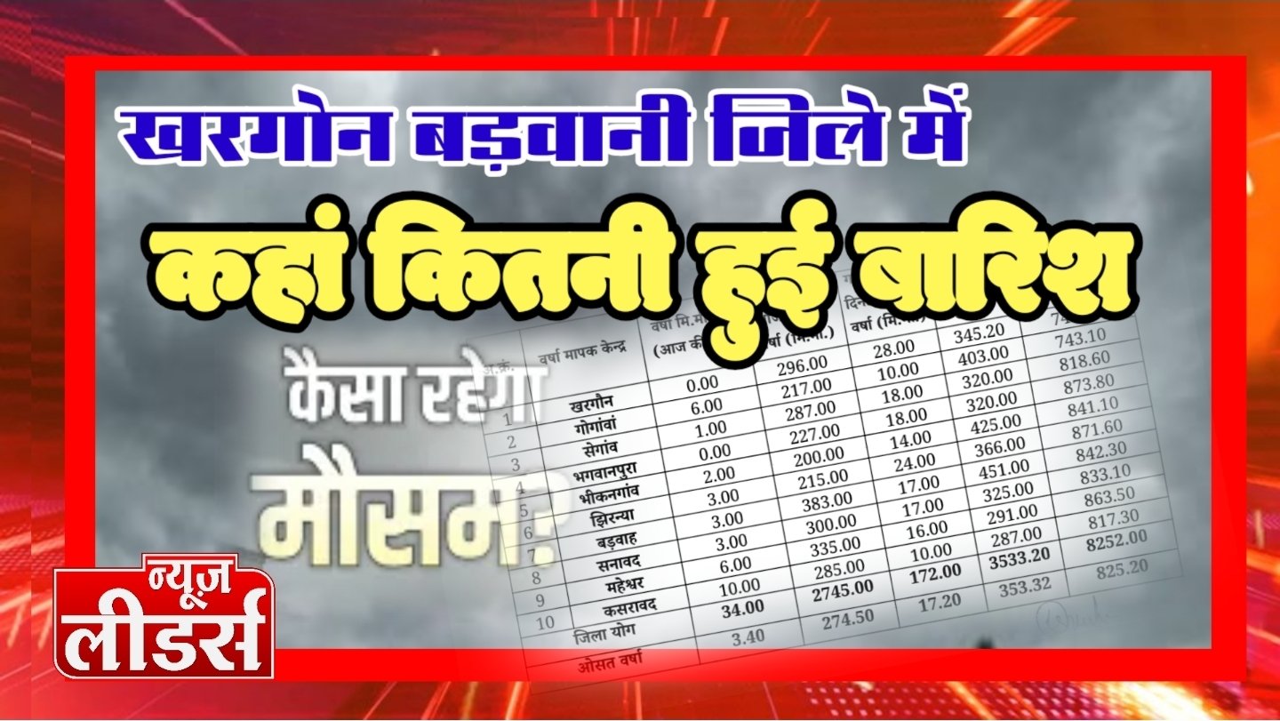 NEWS Leaders : खरगोन बड़वानी जिले में वर्तमान वर्षा की स्थिति, भू अभिलेख विभाग ने जारी की सूची, देखिये कहां कितनी हुई बारिश