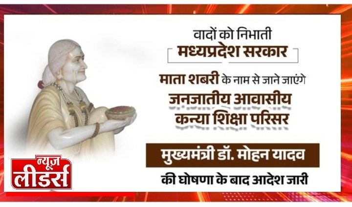 NEWS Leaders : माता शबरी के नाम से जाने जाएंगे आवासीय कन्या शिक्षा परिसर आदेश जारी
