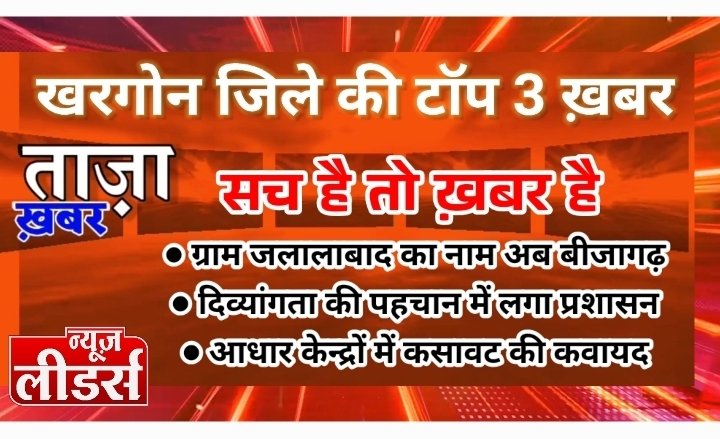 NEWS Leaders : खरगोन जिले की टाॅप 3 ख़बर ● ग्राम ’जलालाबाद का नाम अब बीजागढ़ ● दिव्यांगता की पहचान में लगा प्रशासन ● आधार केन्द्रों में कसावट की कवायद