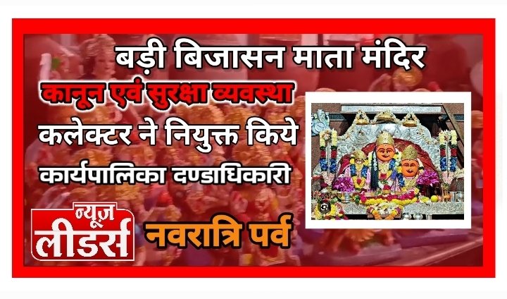 NEWS Leaders : बड़ी बिजासन माता मंदिर में कानून एवं सुरक्षा व्यवस्था के मद्देनजर कलेक्टर ने नियुक्त किये कार्यपालिका दण्डाधिकारी