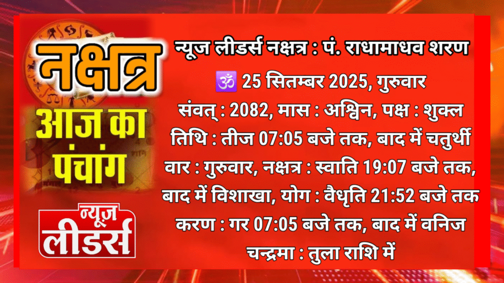 NEWS Leaders : कैसा रहेगा 25 सितंबर 2025, गुरुवार राशिफल, क्या कह रहे है पंडित राधामाधव शरण यज्ञाचार्य.