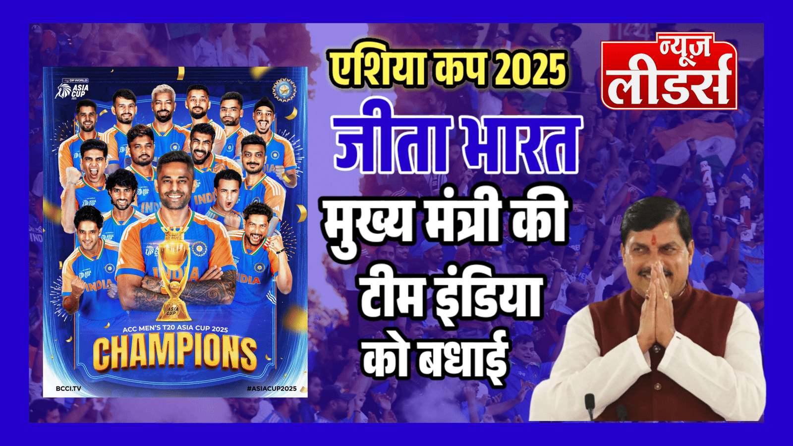 Newsleaders : मुख्यमंत्री डॉ. यादव ने एशिया कप क्रिकेट टूर्नामेंट में भारत की जीत पर दी बधाई
