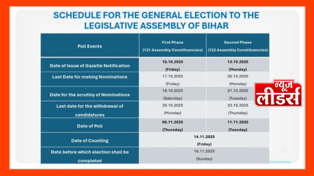 Newsleaders : बिहार विधानसभा चुनाव कार्यक्रम की घोषणा