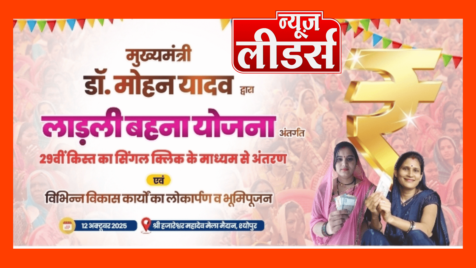 Newsleaders : एक करोड़ 26 लाख लाड़ली बहनों को मिलेगी रविवार को 29वीं किस्त, मुख्यमंत्री सिंगल क्लिक से अंतरित करेंगे 1541 करोड की राशि