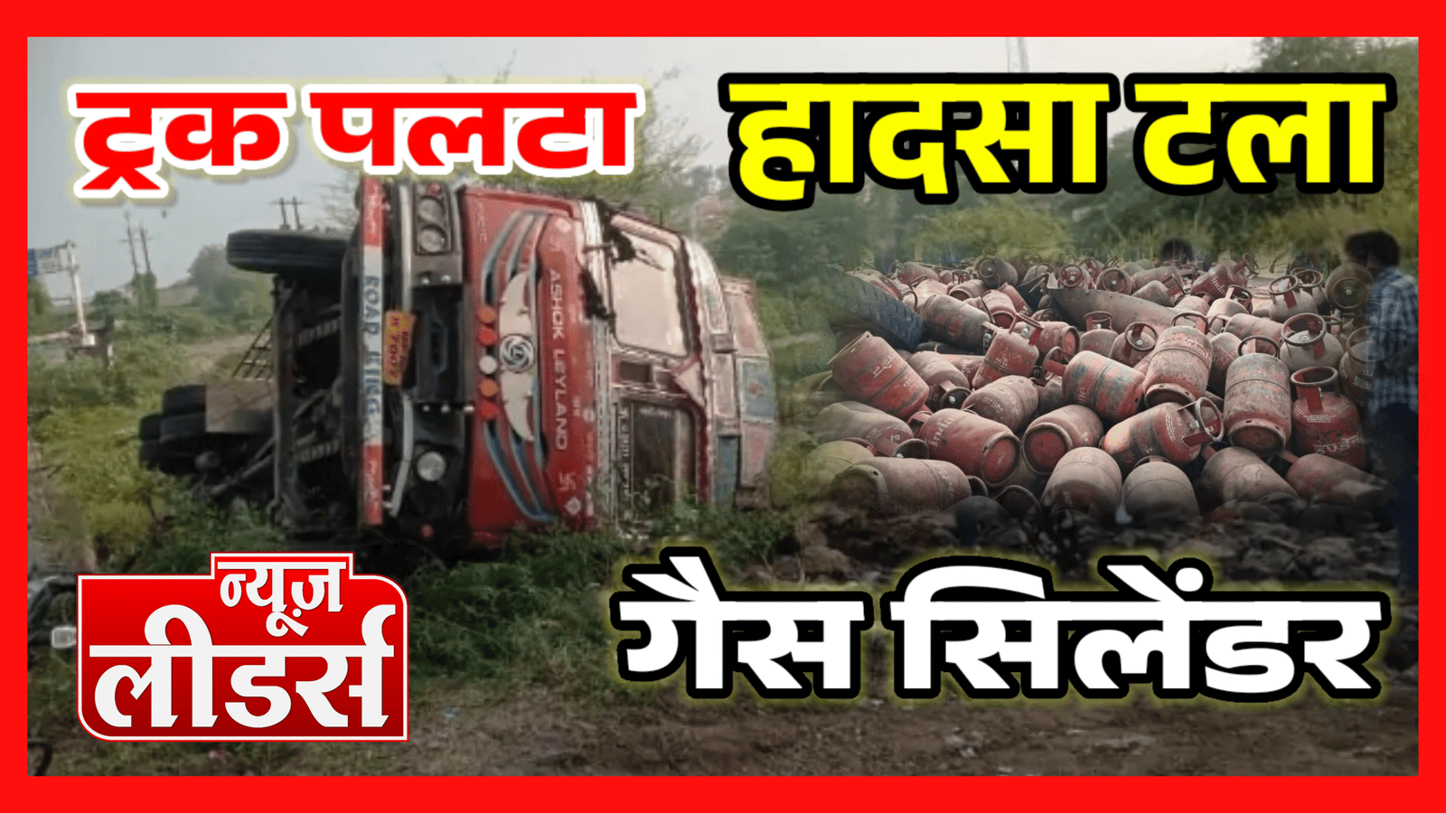 Newsleaders : गैस सिलेंडर से भरा एक ट्रक पलटा, बड़ा हादसा टला, ग्रामीणों ने की मदद, चालक को मामूली चोंटे
