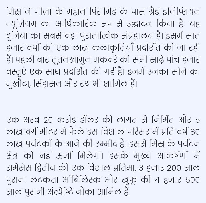Newsleaders : दुनिया के सबसे बड़े पुरातात्विक संग्रहालय ग्रैंड इजिप्शियन म्यूज़ियम का उद्घाटन