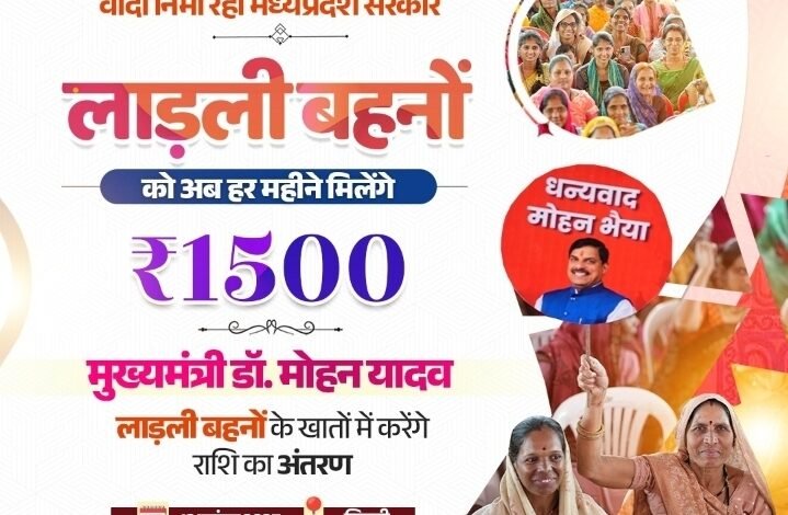 मुख्यमंत्री लाड़ली बहना योजना की राशि 1500 रूपये किये जाने की स्वीकृति