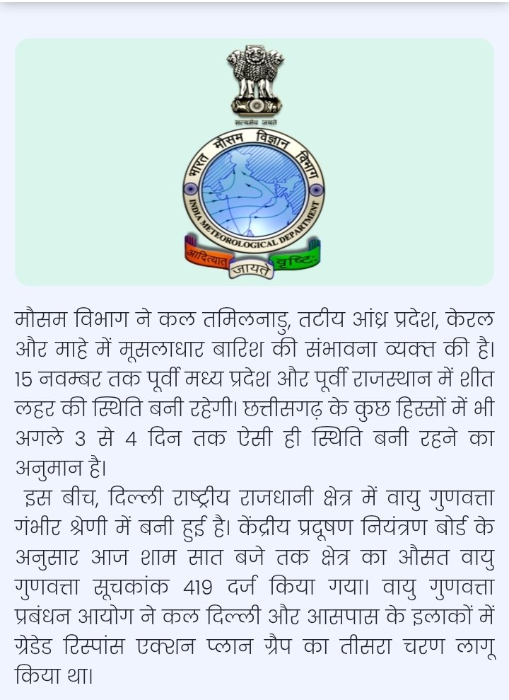 Newsleaders : तमिलनाडु, आंध्र प्रदेश, केरल और माहे में भारी बारिश की संभावना : मौसम विभाग