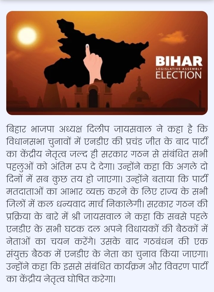 Newsleaders : बिहार: एनडीए की प्रचंड जीत के बाद केंद्रीय नेतृत्व जल्द सरकार गठन को अंतिम रूप देगा