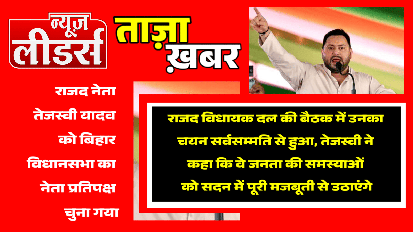 Newsleaders : तेजस्वी यादव बने बिहार विधानसभा में नेता प्रतिपक्ष, तेजस्वी का तेज क्या कायम रहेगा ?