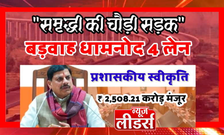 Newsleaders : “समृद्धी की चौड़ी सड़क” बड़वाह धामनोद 4 लेन मार्ग को ₹ 2,508.21 करोड़ की मंजूरी, मंत्रि परिषद ने दी प्रशासकीय स्वीकृति