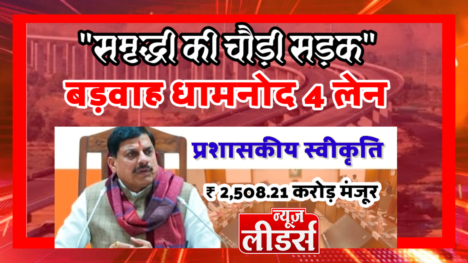 Newsleaders : “समृद्धी की चौड़ी सड़क” बड़वाह धामनोद 4 लेन मार्ग को ₹ 2,508.21 करोड़ की मंजूरी, मंत्रि परिषद ने दी प्रशासकीय स्वीकृति