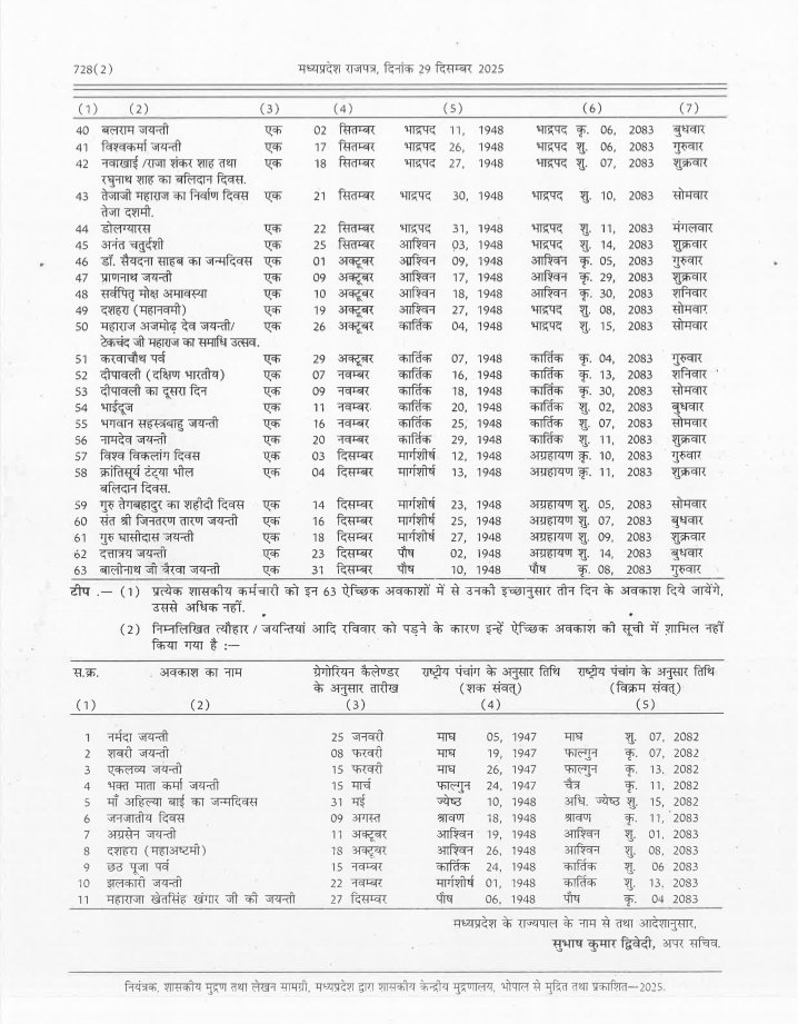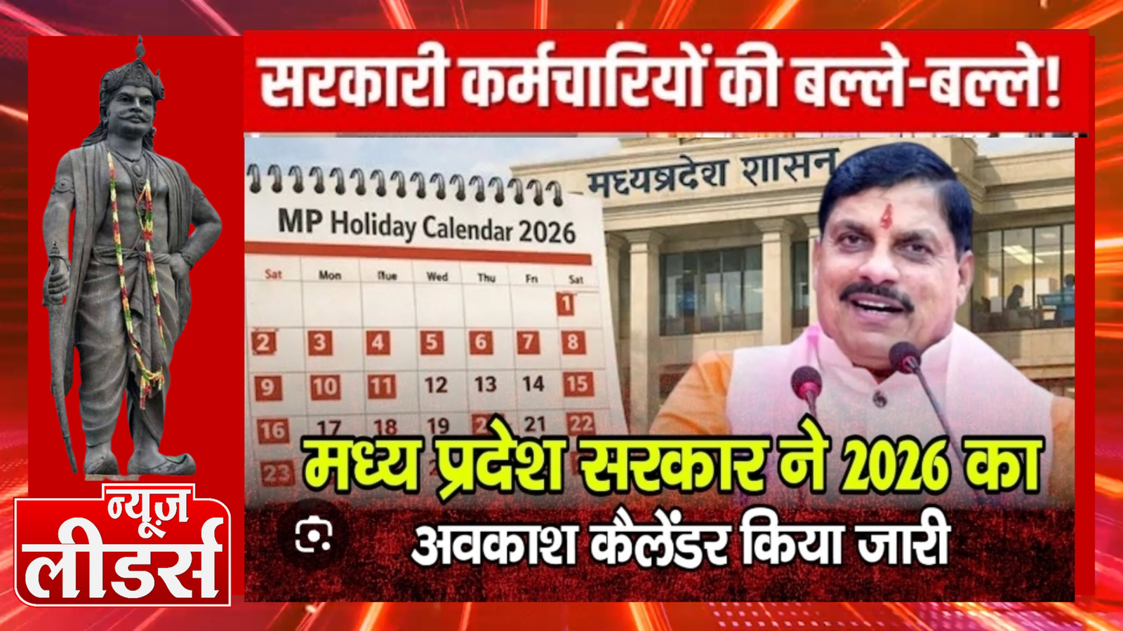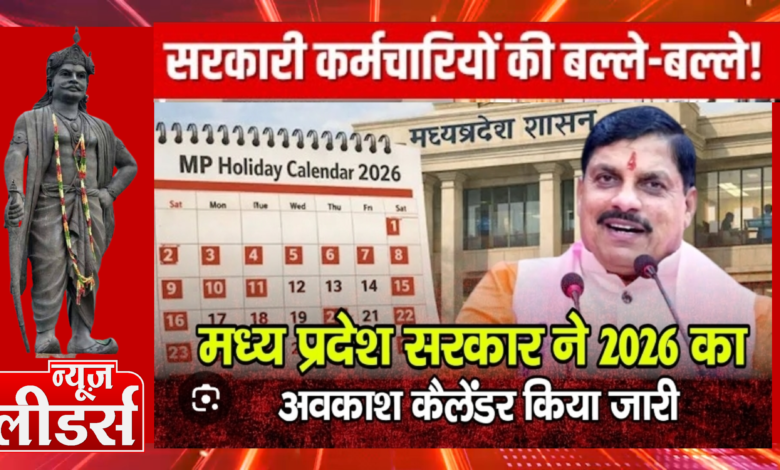 Newsleaders : मप्र राज्य सरकार ने वर्ष 2026 के लिए राष्ट्रीय, धार्मिक और सामाजिक स्तर पर तिथियों पर सार्वजनिक अवकाश घोषित किए, देखिए सूची