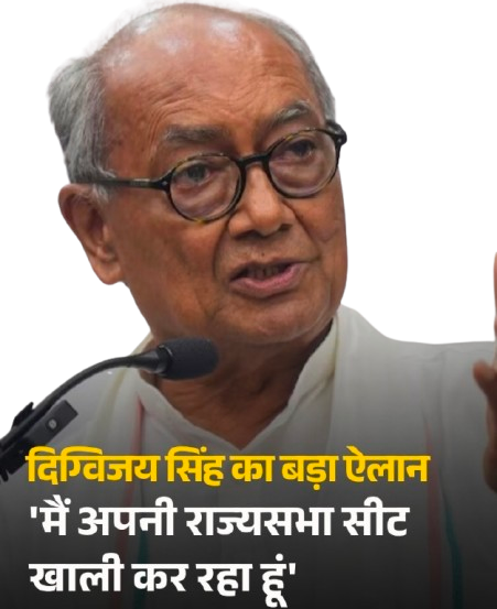 मध्यप्रदेश के पूर्व मुख्यमंत्री और कांग्रेस के वरिष्ठ नेता दिग्विजय सिंह ने ऐलान कर दिया है की वह अपनी राज्यसभा सीट खाली कर रहे हैं और तीसरी बार उच्च सदन में नही जायेंगे। इस हालिया बयान ने मप्र में कांग्रेस की सियासत को गरम कर दिया है। दिग्विजय सिंह ने कहा कि यह फैसला पूरी तरह उनका अपना है।
