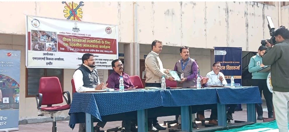 शासकीय आईटीआई भगवानपुरा में एमएसएमई मंत्रालय, भारत सरकार के इंदौर कार्यालय द्वारा पीएम विश्वकर्मा पर जागरूकता कार्यक्रम का आयोजन किया गया। कार्यशाला का शुभारंभ दीप प्रज्ज्वलन कर किया किया। इस कार्यशाला में 18 ट्रेड्स के 140 से अधिक पंजीकृत हितग्राहियों ने प्रतिभाग किया। कार्यक्रम में एमएसएमई इंदौर के सहायक निर्देशक गौरव गोयल द्वारा हितग्राहियों को योजना की विस्तृत जानकारी दी गई। जिले के एक हितग्राही को पीएम विश्वकर्मा योजना का पूर्ण लाभ लेने पर अधिकारियों द्वारा पुरस्कृत भी किया गया। दीप प्रज्ज्वलन कर कार्यक्रम का शुभारंभ हुआ तथा विकास सहायक निदेशक द्वारा संचालन किया गया।