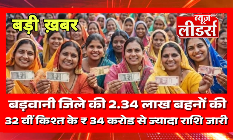 Newsleaders : मुख्यमंत्री ने सिंगल क्लिक से बड़वानी जिले की 2.34 लाख से अधिक लाड़ली बहनों की 32 वीं किश्त के ₹ 34 करोड से ज्यादा राशि जारी की,