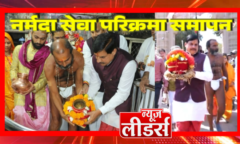 Newsleaders : Omkareshwar नर्मदा सेवा परिक्रमा का समापन, नर्मदा जल लेकर पदयात्रा करते ममलेश्वर पहुंचे सीएम मोहन यादव