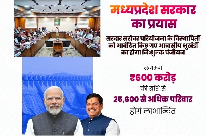 Bhopal : MP सरकार का बड़ा फैसला : सरदार सरोवर प्रभावितों के भूखंड पंजीयन होंगे नि:शुल्क, 25,600 परिवारों को फायदा
